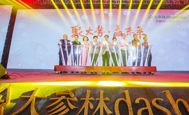 PG国际药业集团董事长刘景萍女士与大参林医药集团董事长柯云峰先生、中国医药商业协会执行会长付明仲女士等嘉宾共同开启了“聚大势•赢未来"大参林工商合作峰会的大幕。